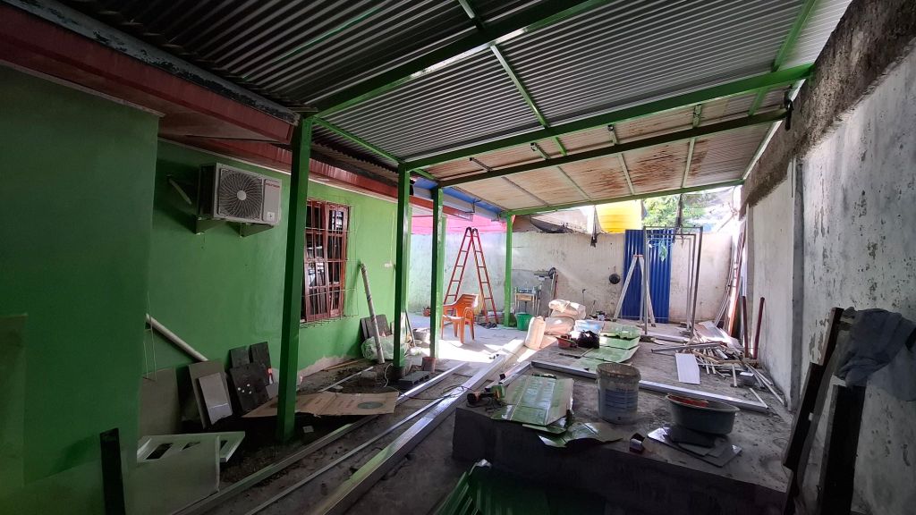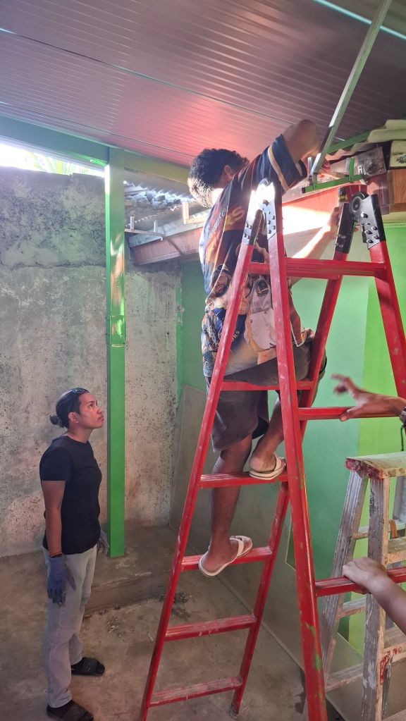 Ecco qualche foto dei nostri ragazzi all’opera per la copertura della parte retrostante della casa e la tinteggiatura del muro.