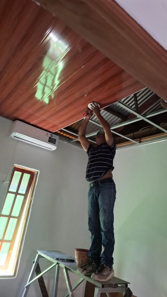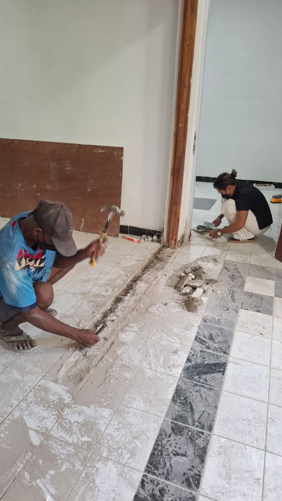Ecco alcune immagini dei lavori per adattare a la parte della casa destinata a futuro uso scolastico. Gli ingressi, la direzione, alcune aule.